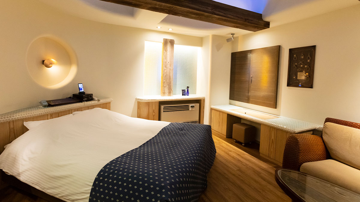 室内も華美なラグジュアリー感を排したシックな造りとなっており、暖かみをもった間接照明や天然素材の建材が海中のようなクールさを控えさせ、スイートな住空間を演出しております。